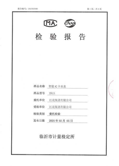 智能IC卡水表检验报告DN1